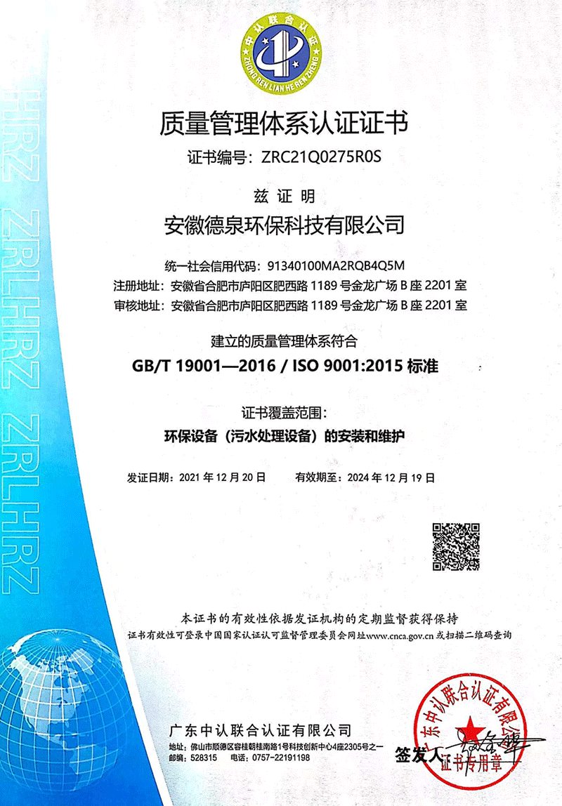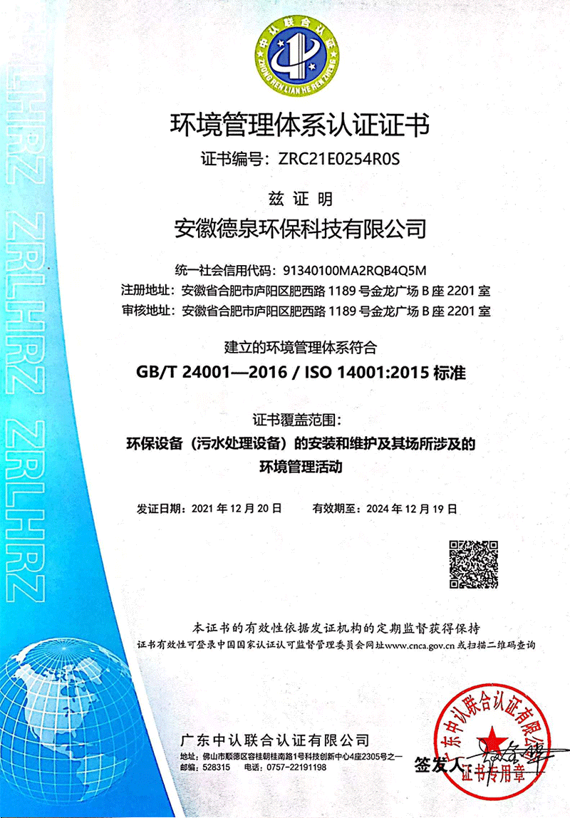 安徽德泉環(huán)保科技有限公司致力于廢水、廢氣、固廢技術處理研發(fā)、設計、施工及運營管理,從事環(huán)保設備及設施的制造和銷售,為環(huán)保項目系統(tǒng)提供專業(yè)的技術咨詢和服務。是一家集建筑勞務分包,工程總承包(EPC)、項目投資(BOT/PPP)、運營管理(O&M)于一體的綜合性新型高科技企業(yè)。